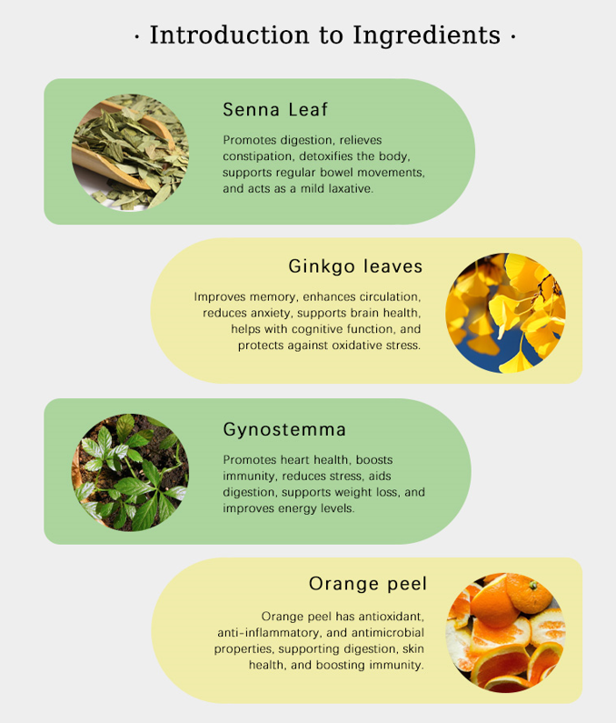 • Gynostemma & Orange Peel: Soothe the gut and enhance detox effects.